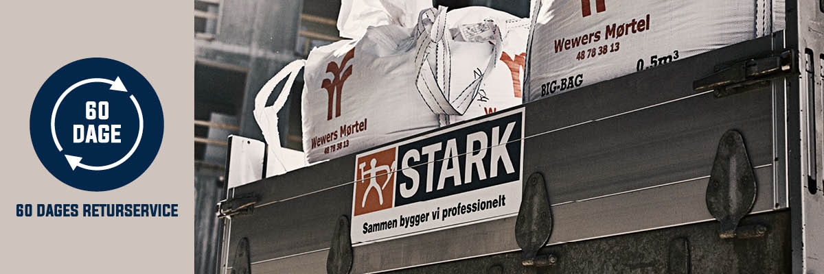 STARK tilbyder branchens bedste returservice. Det gi’r dig mulighed for at samle dine indkøb og få leveret til hele projektet første gang. Du løber ikke tør for materialer undervejs og undgår spildtid i hverdagen. Med 60 dages returservice har du god tid til at returnere overskydende materialer.
